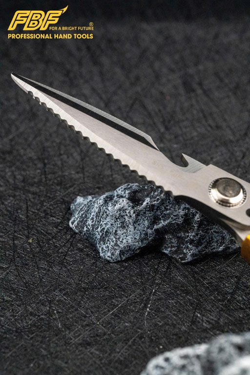 -Lưỡi kéo: Gia công sắc bén, một bên lưỡi răng cưa giúp dễ dàng cắt giấy, bìa carton, dây nhựa, thực phẩm hoặc các vật liệu mỏng khác mà không bị trượt.